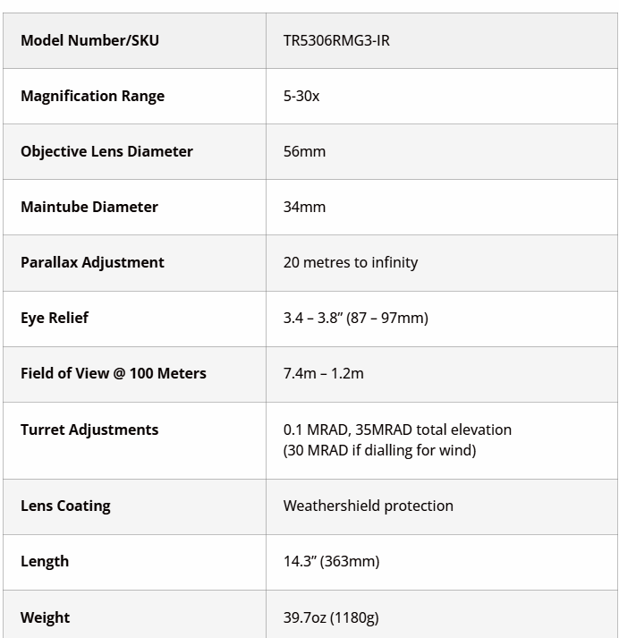 ZEROTECH lunette Trace Advanced 5-30x56ED RMG 3 MRAD IL