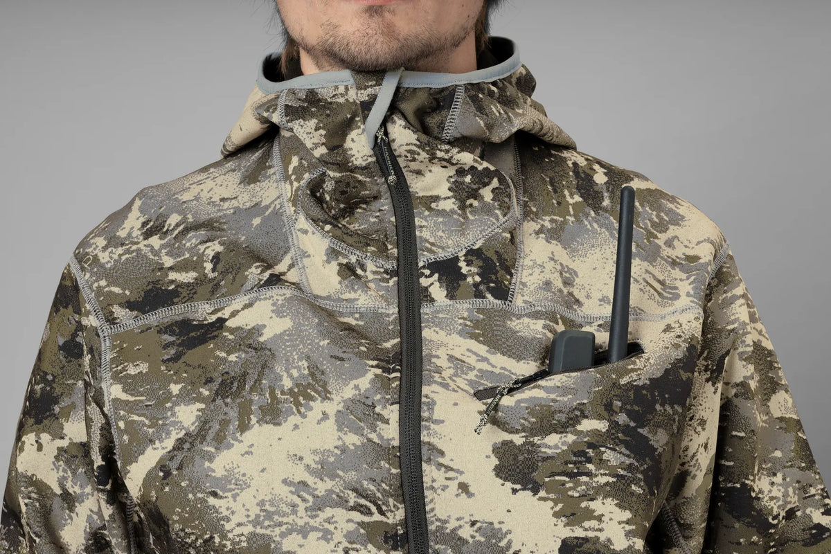 Le sweat à capuche Mountain Hunter Expedition est coupé dans une polaire silencieuse, extensible et extrêmement confortable. Parfait porté seul lorsqu’il fait chaud, ce sweat fera aussi une couche intermédiaire idéale par temps froid et venteux. Une poche radio en biais placée haut sur la poitrine permet d’accéder à sa radio par le dessus. Les deux poches avant en biais peuvent servir de poches repose-mains. Les fentes aux aisselles offrent une ventilation supplémentaire si nécessaire. Le bas du sweat est élastiqué. Son motif camouflage AXIS MSP® Mountain a été spécialement conçu pour la chasse en montagne. Exceptionnellement confortable et seyant, ce sweat à capuche en polaire est le compagnon idéal des chasseurs exigeants.