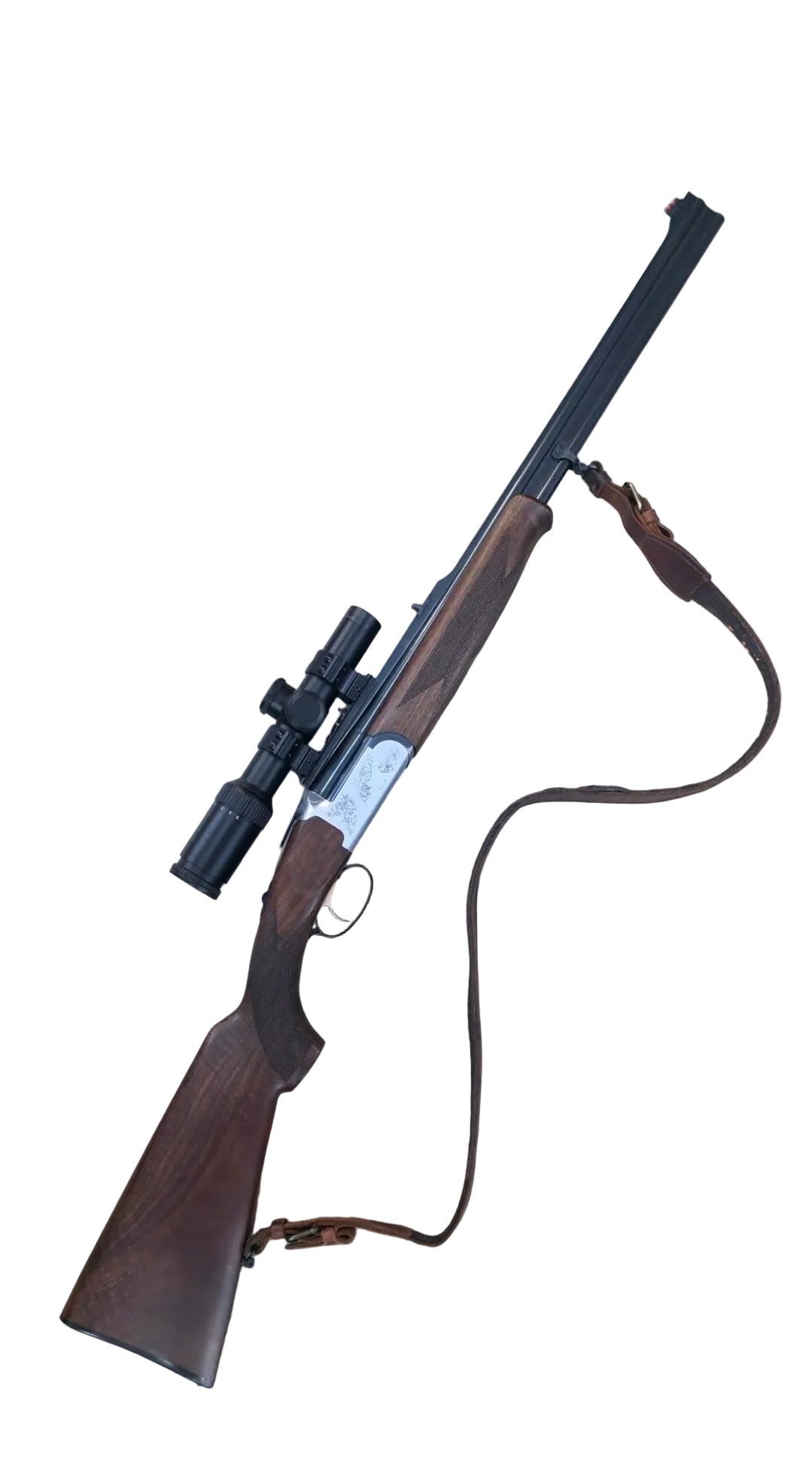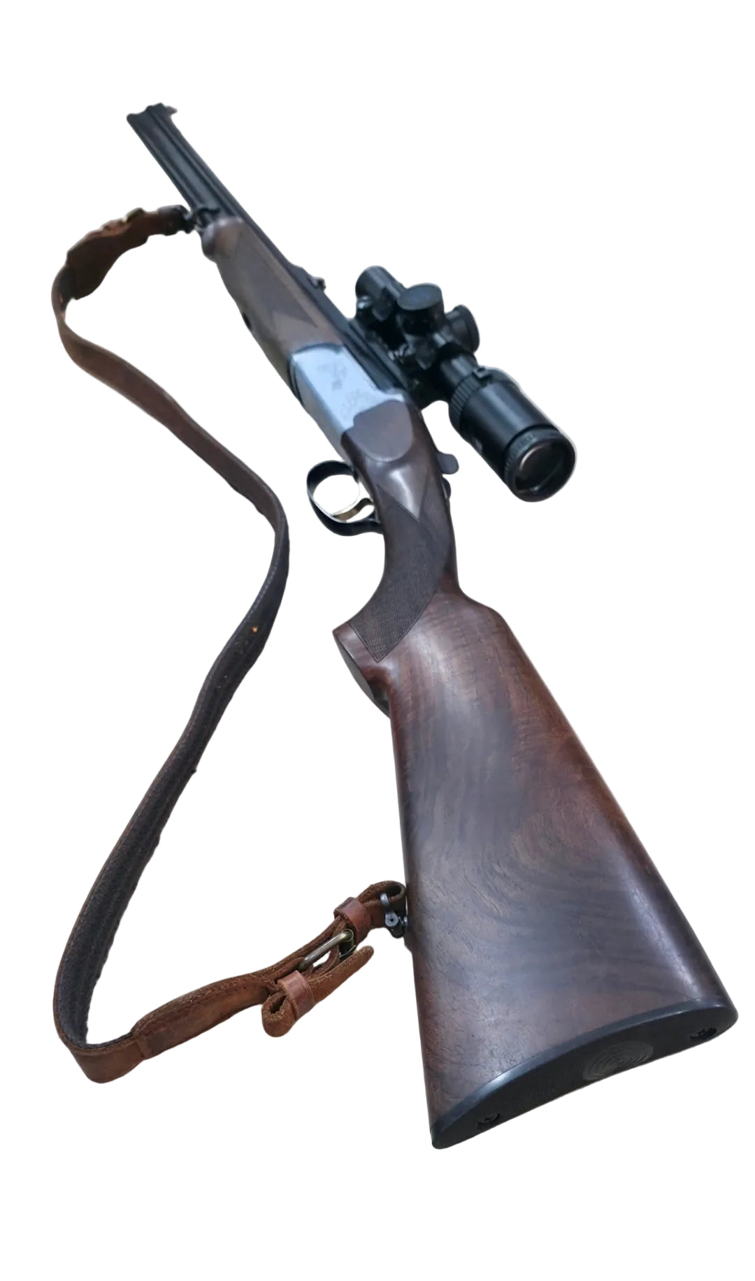 Carabine express de fabrication italienne, reconnue pour la qualité de ses aciers, la régularité de ses canons et la robustesse de sa bascule.